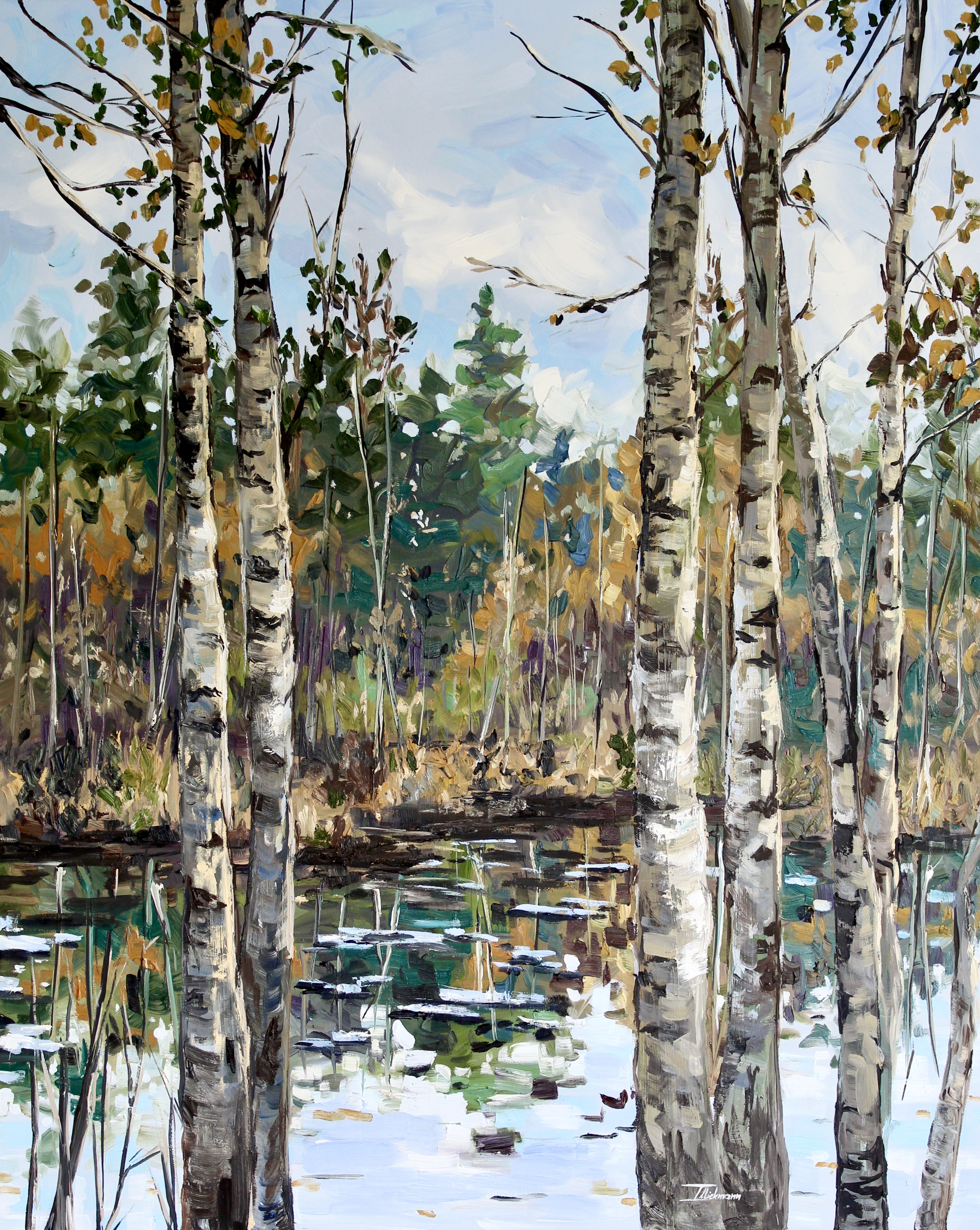 "Autumn's Call" by Liza Illichmann is an oil painting on stretched canvas, sized 80x100 cm. Inspired by the allure of nature during the autumn season, this artwork captures the serene beauty of a crisp autumn day by the lake. Birch trees, resplendent in their golden hues, stand tall against the backdrop of the tranquil waters. With each brushstroke, Liza Illichmann skillfully depicts the rich tapestry of colors that characterize autumn, inviting viewers to immerse themselves in the peaceful ambiance of the scene. "Autumn's Call" serves as a poignant reminder of nature's ever-changing splendor, encouraging exploration and appreciation of the natural world.
