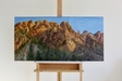 "Sunset in Alps" is an oil painting on canvas, measuring 100 W x 50 H cm. The artwork skillfully portrays an alpine sunset with a focus on the majestic mountains. Painted with an impasto technique, the textured brushwork adds depth and dimension to the mountainous landscape, creating a captivating interplay of light and shadow. This technique invites viewers to not only see but also feel the rugged beauty of the Alps.